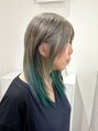 グレージュにエメラルドグリーンのインナーカラーで個性を出したスタイル☆インナーの範囲なども一人一人に合わせて対応させていただきますのでお気軽にご相談くださいませ♪グレージュ/インナーカラー/ダブルカラー/ブリーチ/ハイトーン/ウルフ