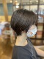 襟足すっきりのショート♪耳掛けもまとまる長さです(^^)重く見えるのが苦手な方におすすめ◎ブリーチを活かしたココアブラウンカラーで透明感もあり可愛いカラーです!