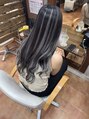 カット+カラー+エクステ。ブルーブラック+ハイライトでシルバー。クールな印象で、秋冬におすすめ。