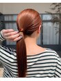 ぱつっと切りっぱなしミディアムカラーは暖色