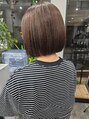 髪質改善ストレートで元の髪のうねりをナチュラルなストレートにすることでまとまりやすく♪切りっぱなしラインがきれいにでるボブとの相性も◎日々のスタイリング時の悩み解消!カラーはナチュラルブラウンで柔らかい色味に仕上げました♪