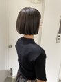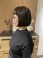 あごラインのパツっとボブに眉上の重ための前髪との相性が可愛い大人なスタイル(^-^)深みあるネイビーグレーのカラーで透明感あって艶やかに。