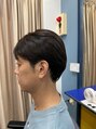 ツーブロックカット・少し柔らかな毛質なので表面にボリュームが出るように短くしました。日常的に、暑い中にいる時間が多いとの事なので毛量調節しボリュームが持続するように考慮ししました。