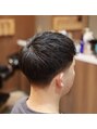<理容室><バーバー>トップは軽めにしてドライヤーで乾かすだけで形になるように、そして刈り上げはテーパーフェードで大人っぽく清潔感あふれるスタイルに!フェードにしたいけど仕事などの関係で厳しいという方にテーパーフェードはおすすめです!