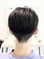 サイドをツーブロックにカットさせて頂いたスタイル。刈り上げの位置が高めなマッシュベースのスタイルで手ぐしで乾かすだけのお手入れの簡単なスタイルです。りんご幹細胞培養液で手触りの良い弾力のある髪に◎