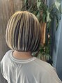 トップはブリーチをしてトナーで黄ばみを飛ばしています。ブリーチ部以外は暗染めなので次回以降も明るくできます。個性的なデザインカラーもご相談ください。