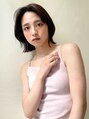 あご下4センチの韓国タッセルボブスタイル。切りっぱなしベースに顔まわりにレイヤーを入れることで動きのあるスタイルに。前髪を長めに設定することでかき上げとダウンが楽しめる2way。カラーはくすみブラウンで透明感と艶感のあるスタイル。
