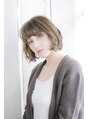 透け感のあるマットベージュ系のカラーが可愛い外ハネゆるカールは動きがあり、ボブにアレンジが欲しい方にオススメのスタイルです。