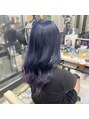 全頭ブリーチからのネイビーとパープルで作るグラデーションカラー!どちらの色も色落ちを綺麗になるように設定しているので、色落ちまで楽しめるデザインカラーになります!
