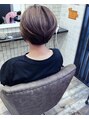 サイドキープの前下がりボブに。カラーはアンブレラカラーのバイオレッドに。