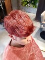 カット&カラーマッシュベースにカットし、刈り上げを効果的に入れることでフロントの重たさを際立せました。カラーはピンクで華やかで柔らかな雰囲気に。
