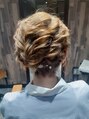 ペアセットショートヘアを柔らかなルーズな編み込みのアップにしました。