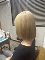 ブリーチ2回ワンレンボブのブロンドベージュ