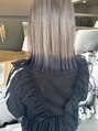 ブリーチで透明感のある絶妙なグレー裾カラーのデザインでブルーのアクセントをつけました。寒色でまとめたオトナっぽさと個性的さを兼ね備えたデザインに。