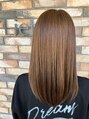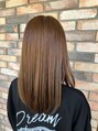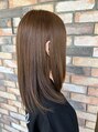 赤みの少ないベージュ系カラーとまとまりやすいレイヤーのミディアムスタイル。明るめカラーのお好きな方や束感のある軽めのスタイルがお好きな方におすすめです。プレミアムトリートメントでしっとり感とツヤ感もしっかり出ます。