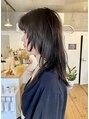 【気に入ったスタイルはブックマークをしていただくと便利です】カットはセミロングレングスのレイヤースタイル。顔周りはハイレイヤー、ミドルセクションからレイヤー入れてラフな軽さと動きを♪髪色は透明感のある暗髪でダークグレー。[薬院/警固]