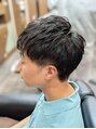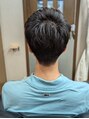 周りを刈り上げてすっきりさせ、アイロンで動きを付けてワックスでスタイリングしました。