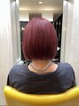 切りっぱなしボブ×チェリーピンク×ピンクカラー×10代20代30代