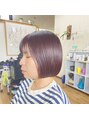 切りっぱなしのボブスタイルにピンク系カラーで大人可愛い雰囲気に!少し幼さの残る大人可愛いボブスタイルもお任せください!ショート/カラー/カット/白髪染め/ヘッドスパ/南風原カラー/ボブ