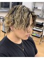 ハイライト波巻きウルフセンターパートメッシュパーマメンズ/ホットペッパービューティー