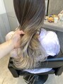毛先はブリーチ2回以上~は必須です。シルバーベージュカラーのグラデーション!根元も暗めのシルバーカラーを入れてます。