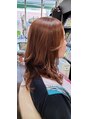エル・カラ・ケアファッションカラー(髪質改善カラーリング)カッパー+マット+シナモンベージュ+ベージュ。髪質改善カラーの効果で光ってるので、レイヤーの動きがハッキリ!
