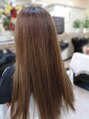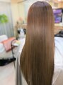 縮毛矯正、カラーダメージありパサつき広がる髪で切れ毛カラー退色あり。毎日のお手入れが大変との事で涙髪一本一本の形状を変えつつ失われた必要成分をしっかり髪内部に構築する事で自分史上最高の髪=美髪へ!