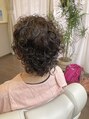 地毛のカールヘアを活かしたショートヘアです。後ろは長めにしたのでスッキリ感もありながら女性らしい綺麗なカールもありおしゃれに仕上がりました。