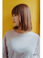 肩に着くくらいの長さで、ナチュラルな内巻きのボブです。前髪も少し厚みがあるので、全体的に重くなりやすいですが顔周りだけ外に流すことでバランスをとっています。