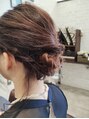 結婚式に参列されるお客様です。 クルリンパと編み込みを組み合わせたシニヨン風アップスタイルです。