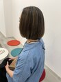 ハイライト+酸性ストレートパーマのボブヘア。パツっとしたラインでクセのおさまりも良くなり、ハイライトで白髪ぼかしつつ立体的な感じに仕上げてます。オイルで艶やかにするのがポイント。