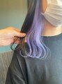 透明感のあるバイオレットを作る事で全体が暗い髪でも重く見えなくなります。
