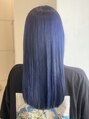 ブリーチ一回のネイビーブルーです。落ち着いたブルーなのでハイトーンカラーですが比較的初めての方でもチャレンジしやすいです!