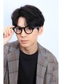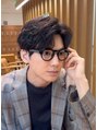 毛流れの先にある毛先の躍動感のある毛束大人フェザーパーマサイドをスッキリ見せて眼鏡との相性抜群