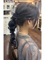 綺麗なブルーアッシュのロングヘアーが映えるよう、髪飾りは無しとの事で、網下ろしに。髪飾りが無い分、ルーズさも出して華やかに。ドレスに合わせ、カジュアルなスタイルも品よく仕上げさせていただきました。とても可愛いかったです。