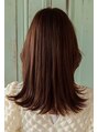 毛先重めのぱつっとミディアムスタイルです!後ろが重い分、前髪は軽めで重すぎないナチュラルヘアです。カラーは暗めのブラウンで落ち着いた印象を持たれやすいです。顔まわりは巻いた時に可愛くなるように重めです!