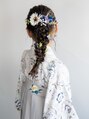 二分の一成人式袴/小学生卒業式袴の着付け/ヘアセット/メイクは【着付け着物レンタルらふりじー代々木/新宿】へ♪編みおろしダウンアレンジ*仕上げに使用しているオリジナルの和装髪飾り( @soieforhair )は、サロン店頭や WEB SHOP でも販売しております*