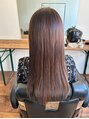 後ろはスッキリ刈り上げた耳だしショートスタイルです。カラーは赤みをおさえたアッシュグレーカラー。髪質改善トリートメントでサラサラツヤツヤに(^^)
