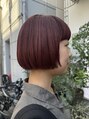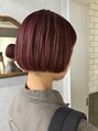 ミニボブスタイルですワンブリーチ後ピンクよりのレッドでオンカラーしています