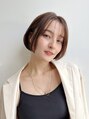 顎くらいの大人ショート、ミニボブ。ベージュカラーで、透明感と柔らかい印象になれます。オイルバームを髪全体に馴染ませるだけのツヤ髪になれる簡単スタイリング。