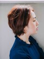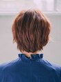 前髪なしの大人ショートスタイルです。カラーはハイライト、ローライトを入れて動きを出して全体はオレンジブラウンをオンカラーしてツヤ感を◎へアバターやオイル系でスタイリングを!