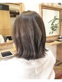 毛先はパツッと切りっぱなしに。表面にレイヤーを入れて抜け感とくびれをプラス。カラーは赤味を抑えたミルクティーベージュで柔らかい印象に。