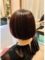 くせで広がりやすいので、まとまりの良いボブにしました☆軽く全体にストレートアイロンを入れて、N.ポリッシュオイルでツヤ感を出しました!