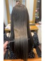 プラチナ縮毛矯正でダメージを最小限に抑えた施術が可能です◎乾かしただけでまとまるツヤスレートヘアに◎カラーはオリーブグレージュで透き通るような透明感カラーに◎
