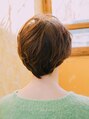 トップが長めのショートボブです。ショートですが、トップが長いことでかきあげ風にできたり、巻いたりアレンジの幅が効きます。万能ショートボブです!!カラーは落ち着いたブラウンカラーに細くハイライトが入っています。