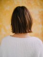 あご下でそろえたワンレングスベースの外ハネボブ。顎ラインで外ハネにするのがバランス良く仕上がります!カラーは栗のような柔らかいベージュカラー。光に透けるような柔らかいカラーです。シンプルな形だからこそカラーにこだわりを!