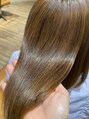 明るめカラーでも、毛髪の形状が整うとここまで潤いあるツヤツヤストレートに仕上がります。sapuriのオイルバターでスタイリング仕上げると、よりツヤ感とまとまりup!