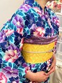 浴衣と帯、兵児帯、色と柄が絶妙に重なり合ってとても良い感じなりました♪(^○^)ポイントは何といっても兵児帯ですね~♪とにかく可愛さとボリュームが出て、一気に華やかになります♪当店の兵児帯アレンジは上に乗せるじゃなく、交ぜ合わせて可愛くです♪