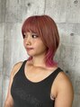 外ハネスタイリングの肩につくくらいのミディアムスタイル。カラーは暗めのラベンダー