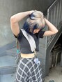 ホワイトとブルーのルーツカラーに。2ブリーチ必要なデザインカラーになります。